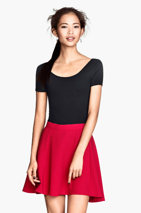 Esta falda corta de vuelo color rojo es perfecta para tus estilismos más chic. En tu día a día combínala con un jersey o sudadera XXL superpuesta y por la noche con un crop top básico.