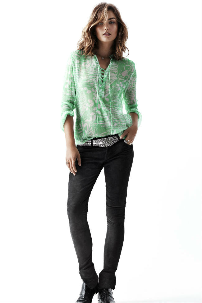 Los leggings de ante estampados aportan textura, mientras que los vaqueros pitillo acaban en un corte acampanado. Los elegantes vestidos en gasa de algodón transmiten un romanticismo vintage y los adornados con motivos gráficos y símbolos de quiromancia aportan un toque de misticismo urbano.