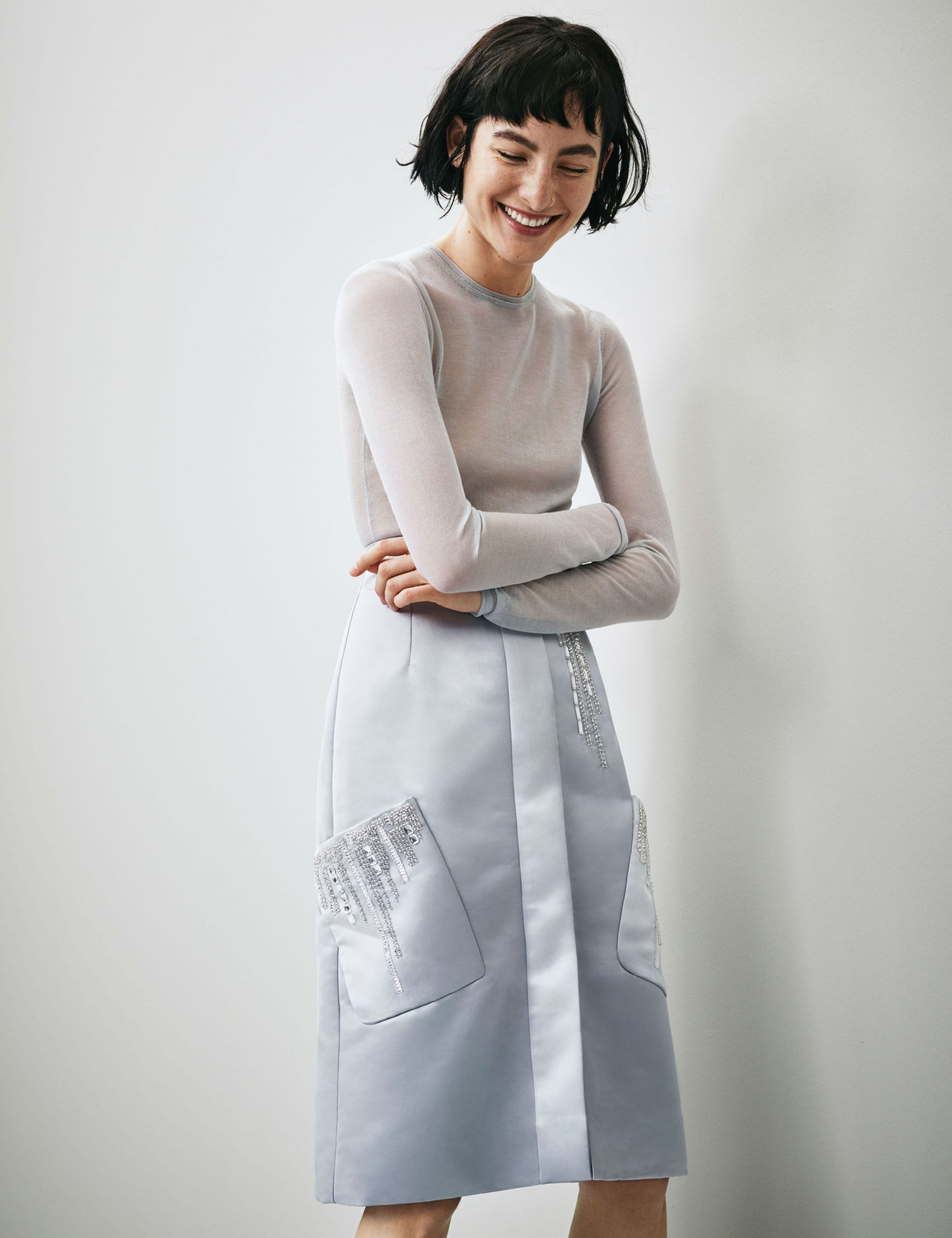 “Una de mis piezas favoritas de la colección es el minivestido asimétrico inspirado en un cuadro de Gustave Moreau. Me encanta la mezcla de un tejido sostenible y ecológico con un cuadro antiguo. Es fantástico tener prendas sostenibles dignas de la alfombra roja”, apunta Julia Restoin Roitfeld, imagen de la campaña.