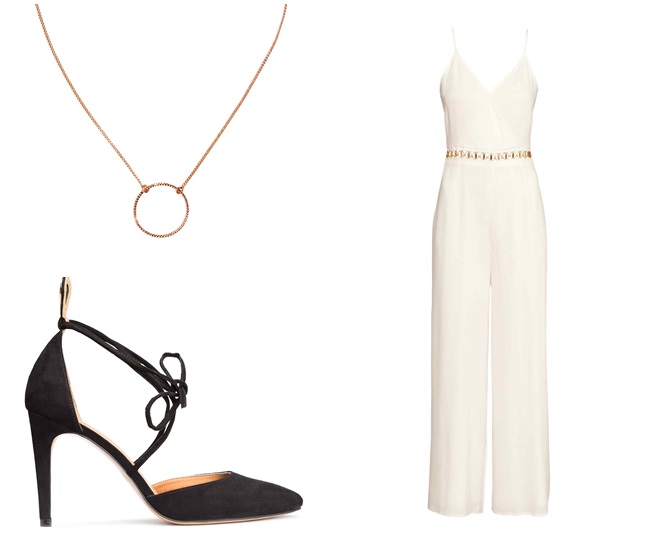 Conviértete en una diva con un mono blanco, los detalles en clave gold acentúan tu silueta marcando tu anatomía. Apuesta por un colgante minimalista y no optes por otros complementos llamativos, así dejarás todo el protagonismo a la prenda en cuestión. Aderézalo con unos tacones acordonados en color negro, increíblemente cómodos y elegantes.