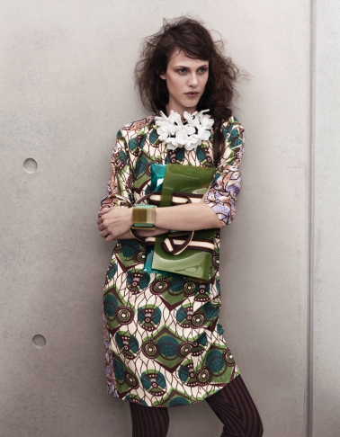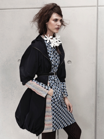 Una colección de de corte recto y colorida con vistosos estampados al más puro estilo Marni. Donde los vestidos amplios en tejidos ligeros acompañan a prendas más inusuales como el poncho estampado con capucha  y el abrigo estampado.