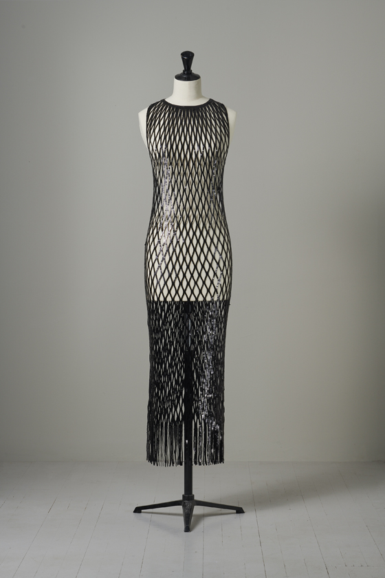 Vestido de malla hecho con cuentas negras es un accesorio brillante en sí mismo. Es perfecto para llevarlo encima de un slip dress o incluso sobre un top y pantalones. Para darle el último roque, tiene algunos flecos sueltos que le da movimiento.