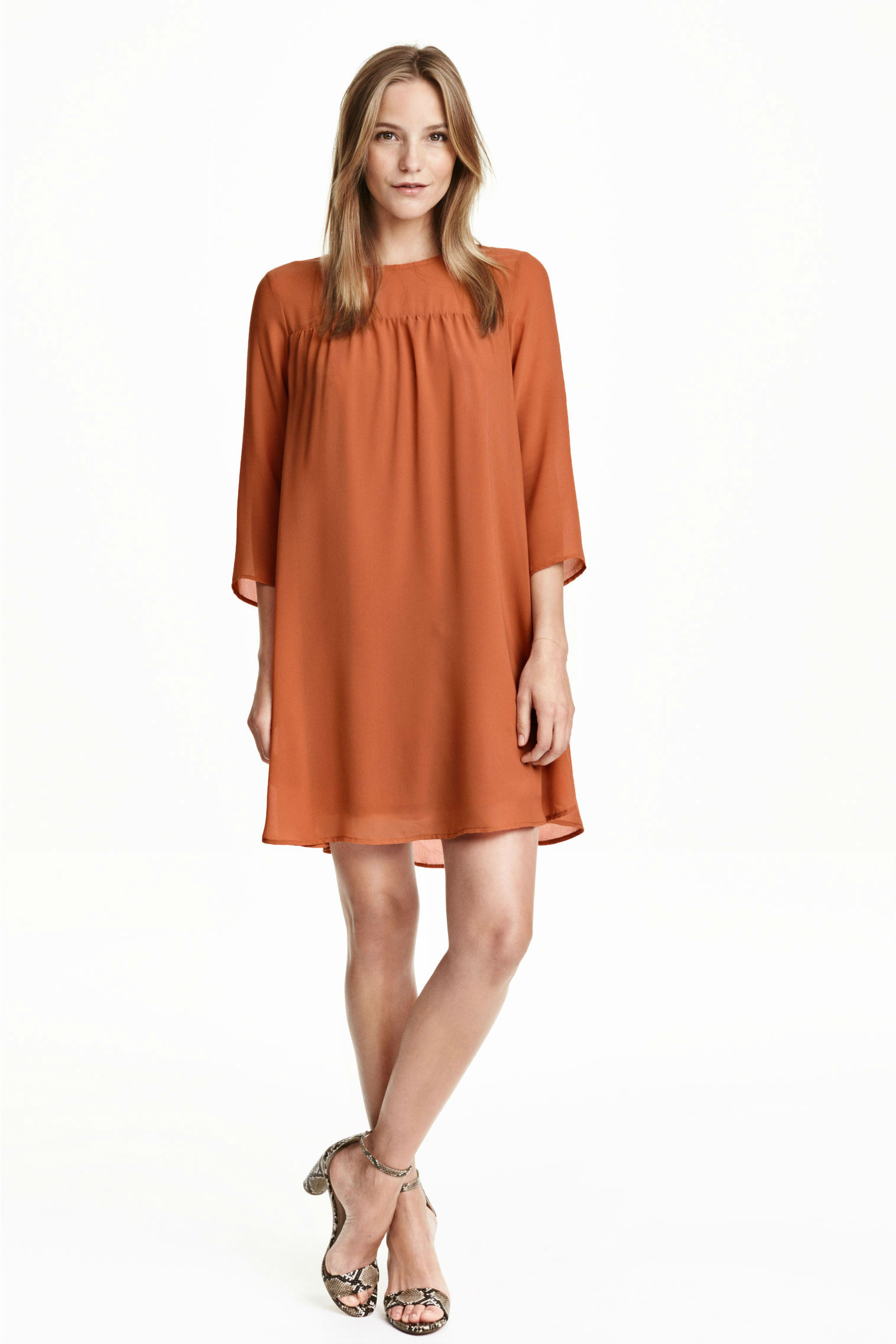Muestra tu lado más elegante a través de vestidos en tejidos vaporosos. Un ejemplo es este diseño en color arcilla y de manga francesa, con él no tendrás problemas para sorportar las altas temperaturas. ¡Nos encanta cómo queda con las sandalias en animal print!