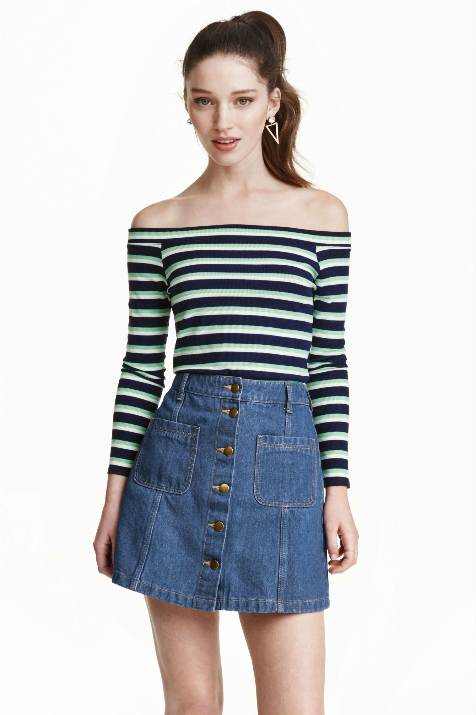 Otra de las prendas que se han convertido en un verdadero boom es la camisa o camiseta con los hombros descubiertos. Muestra esta parte tan sexy de tu anatomía a través de productos cómodos que cuentan con un estampado navy de lo más divertido.