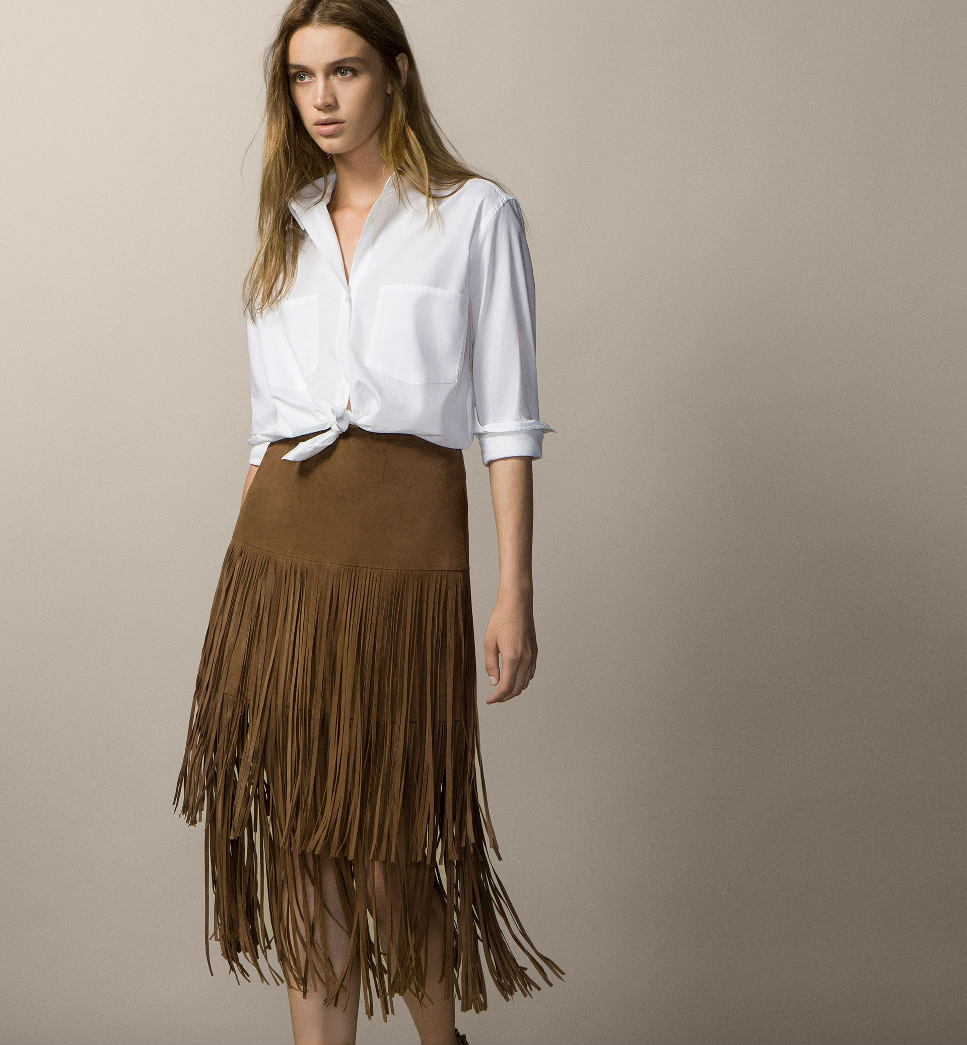 Massimo Dutti parece apostar por la mezcla de diferentes estilos en un mismo combo. La firma más elegante de Inditex se decanta por unir una prenda inspirada en la estética boho con otras más urbanitas en un mismo outfit. Por ejemplo, una falda cargada de estampado y de tejido vaporoso con una chupa de cuero o una falda de flecos con una camisa blanca. ¡Nos encanta este mix!
