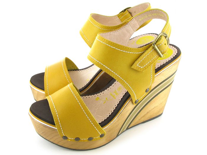 Si buscas una cuña para tu día a día, cómoda y estilosa te proponemos el modelo Caldea con tacón de madera en colores vibrantes como el fucsia, el amarillo y el azul. Le darán un toque formal a tus outfits veraniegos.