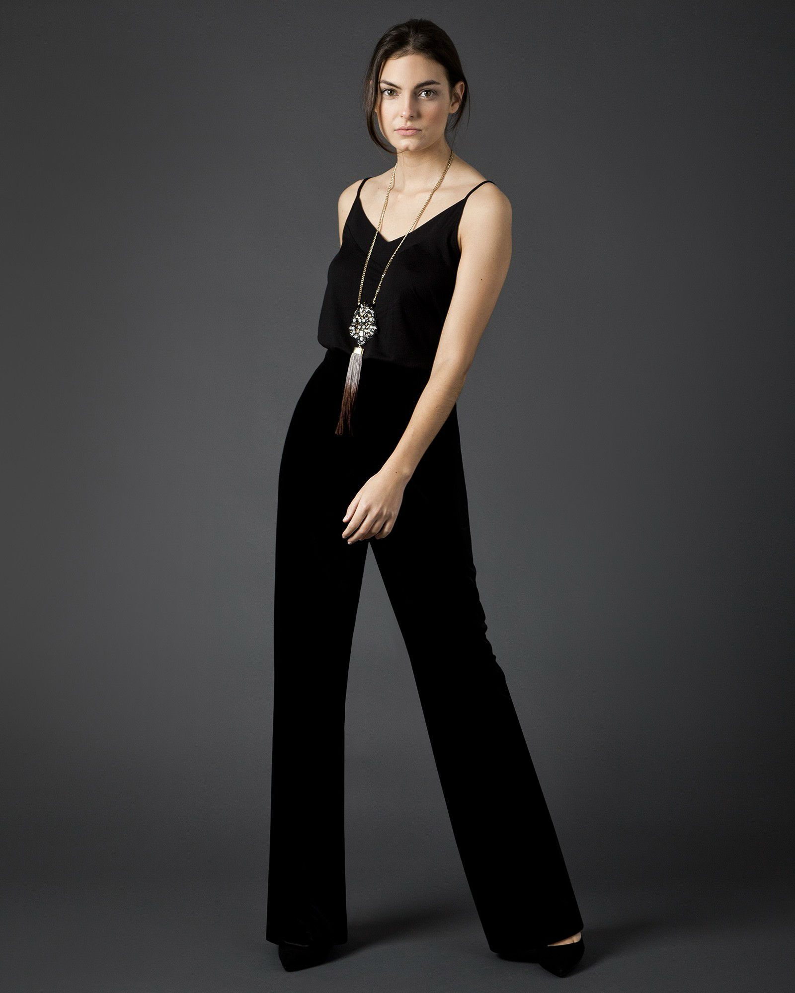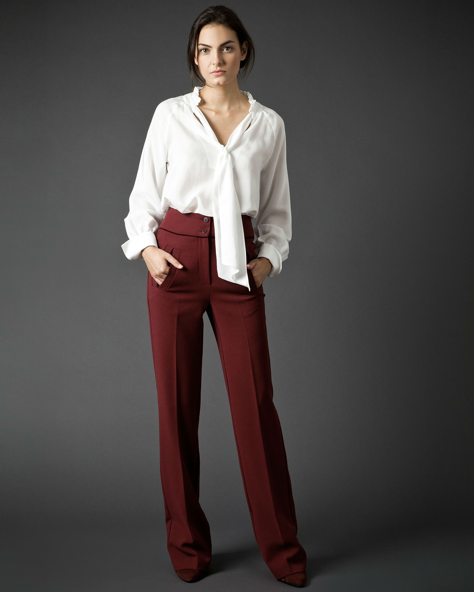 Aprovecha los pantalones palazzo en color burgundy o confeccionados en terciopelo. Es una de las opciones retro que se han implantado en nuestro fondo de armario y que consigue que un combo formado por esta prenda y una blusa se convierta en el mejor aliado.