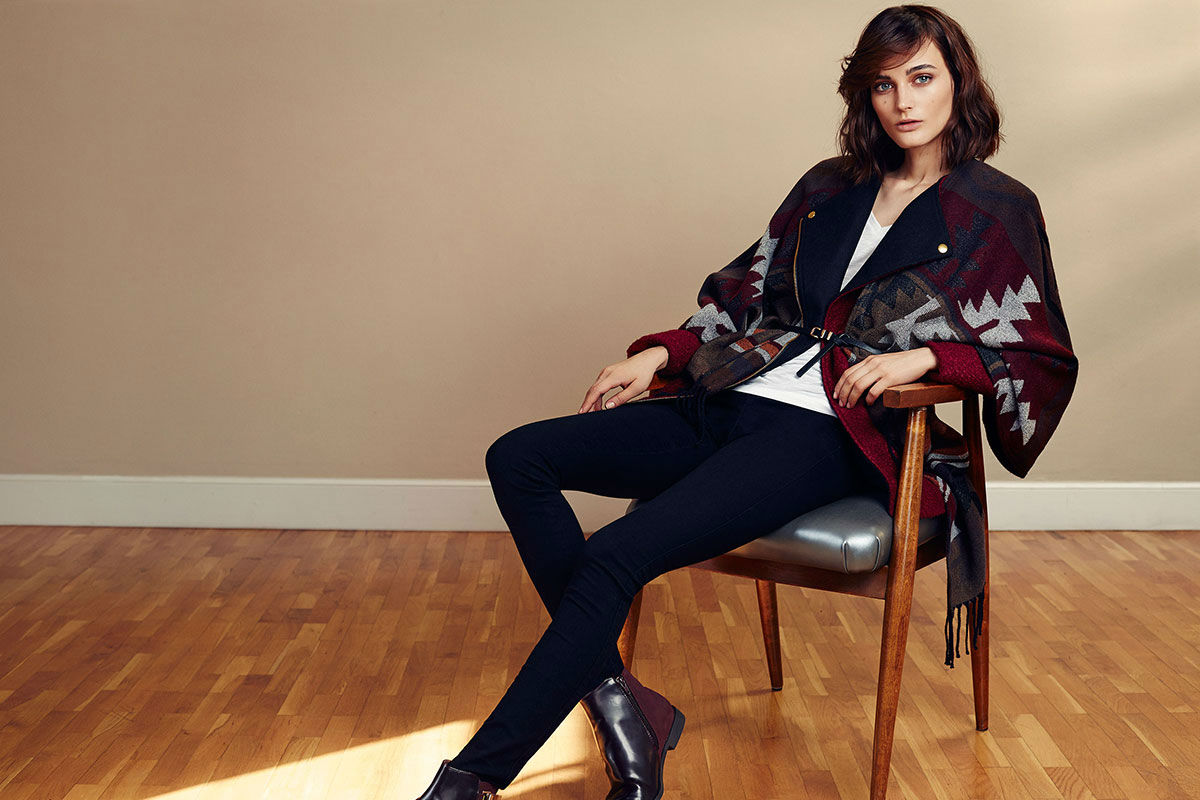 Si unes una capa con un estampado étnico, el resultado será increíblemente cool. El resto de prendas deberán ser básicos y de colores neutros para no restar esencia a la prenda estrella. (Lefties)