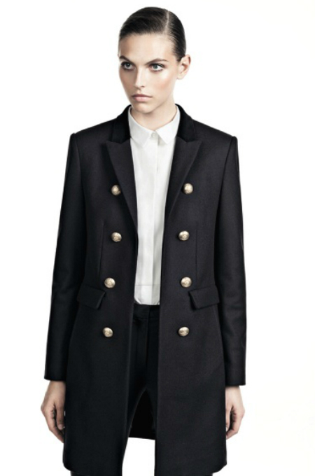 Los abrigos, prenda fundamental en esta época del año, no faltan en la colección. Tonos oscuros, corte clásico y detalles como el cuello de oveja dan como resultado estilismos muy glamurosos.