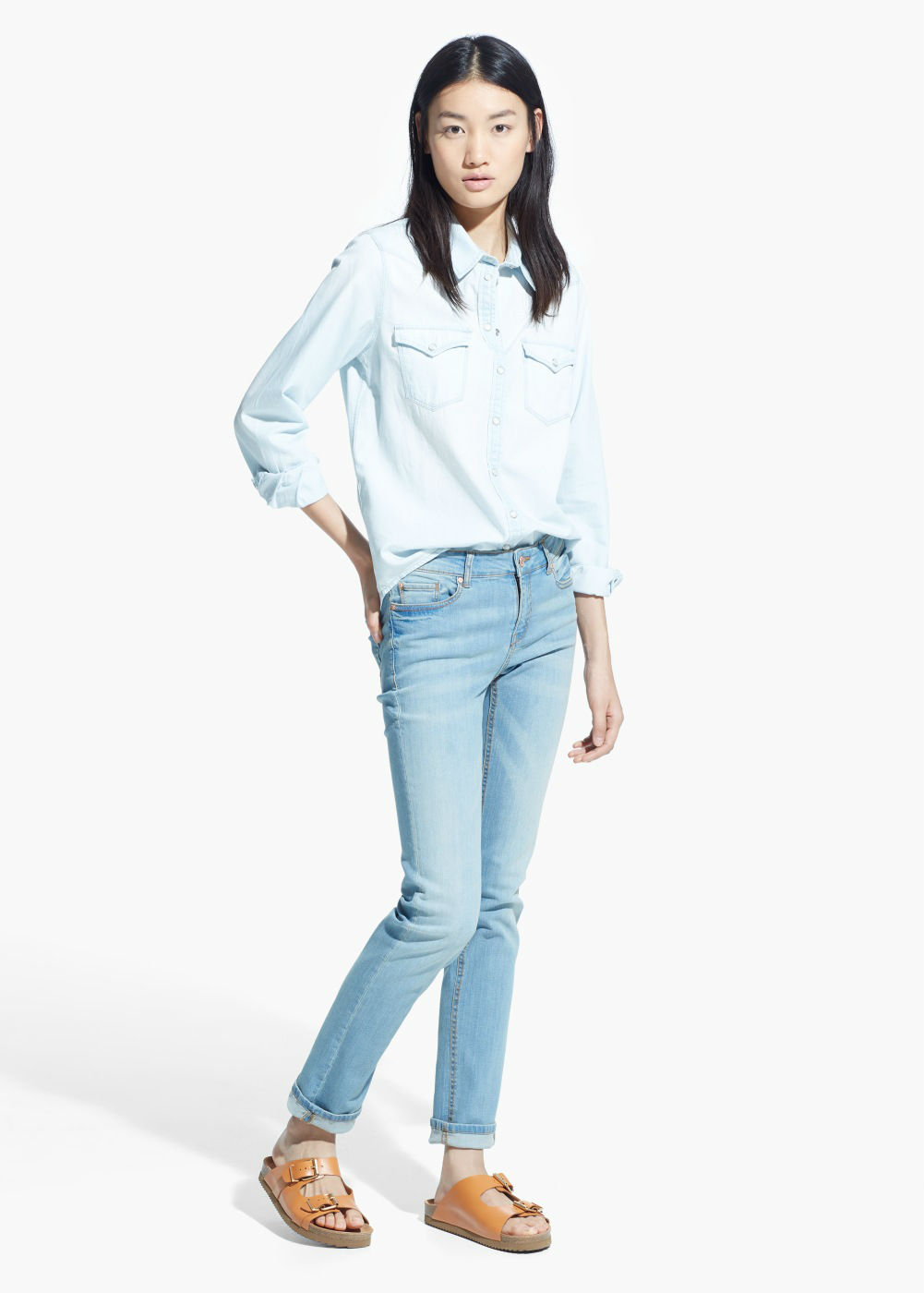 Mango da paso a pantalones en denim con una característica muy definida: la sobriedad. En su sección de vaqueros encontrarás piezas sencillas pero igual de favorecedoras que sus compañeros más desgastados.