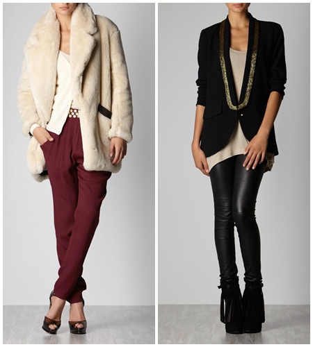 Pata completar tu look e ir calentito las frías noches de Navidad, la firma presenta dos tipos de chaquetas, la primera una blazer con detalles dorados y la segunda opción un abrigo de pelo en un tono muy suave.