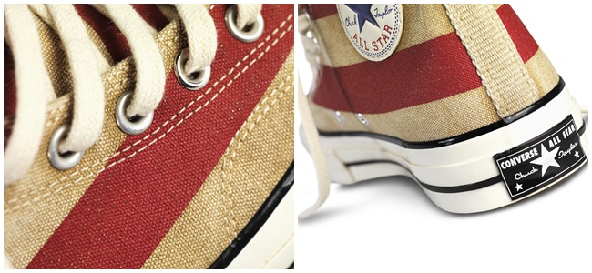 Coincidiendo con la llegada de las próximas vacaciones del Memorial Day americano, las nuevas Converse Vintage Flag Chuck Taylor All Star ’70 de edición limitada servirán de puesta a punto para el verano y para prepararse para las barbacoas y los fines de semana en la playa.