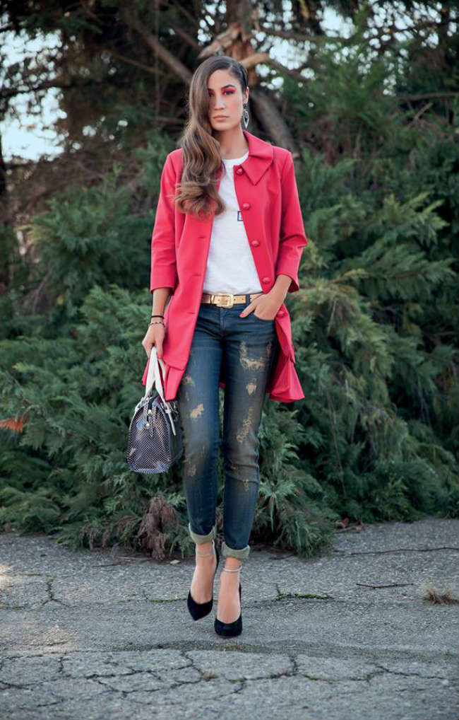 Una vez más los tonos rosas son los protagonistas en las prendas de abrigo, como el que observamos a continuación con mangas tres cuartos perfecto para las noches primaverales.
