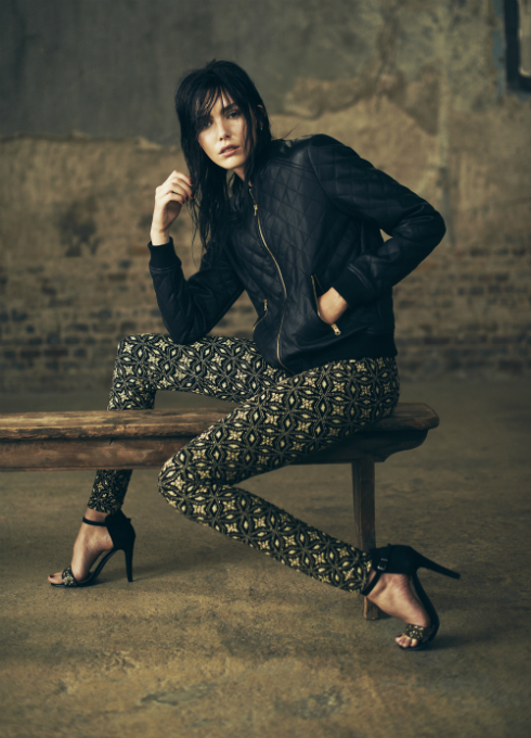 Entre los estampados de este look encontramos los florales en tonos oscuros, mosaicos y aplicaciones de pedrería en piezas clave como jerséis de punto metalizado, sudaderas “joya” y sofisticadas blusas.