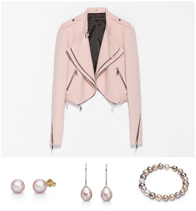 Esta temporada las perlas están más de moda que nunca y nos sorprenden con propuestas de máxima tendencias como son los colores pasteles. Hemos hecho una selección de nuestros complementos fetiche en esta tonalidad, además creemos que quedan ideal con una chaqueta tipo, como podemos ver en la imagen a continuación, ¿qué te parece?