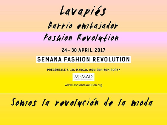 El día 24 de Abril desde las 16h tendrán diversas actividades centralizadas en las instalaciones de Elamedia Estudios y de las que también irán informado desde su página de Facebook. Convirtiendo el barrio de Lavapiés en embajadores de la moda sostenible.