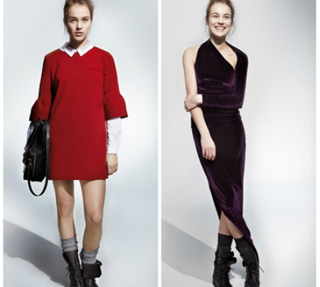 El rojo y los vestidos de gala también están presentes en esta colección. En este caso, el diseñador opta por vestidos a la rodilla combinados con camisa blanca para diario y por los vestidos largos de terciopelo para la noche.