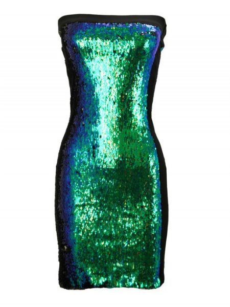 Las lentejuelas son el estampado favorito para Nochevieja, año tras año lo vemos en los catálogos y la verdad es que nunca nos cansamos de ellas. Nuestro favorito es el diseño mini de palabra de honor de Denny Rose en tonos verdes y azules muy sexy y perfecto para la ocasión.