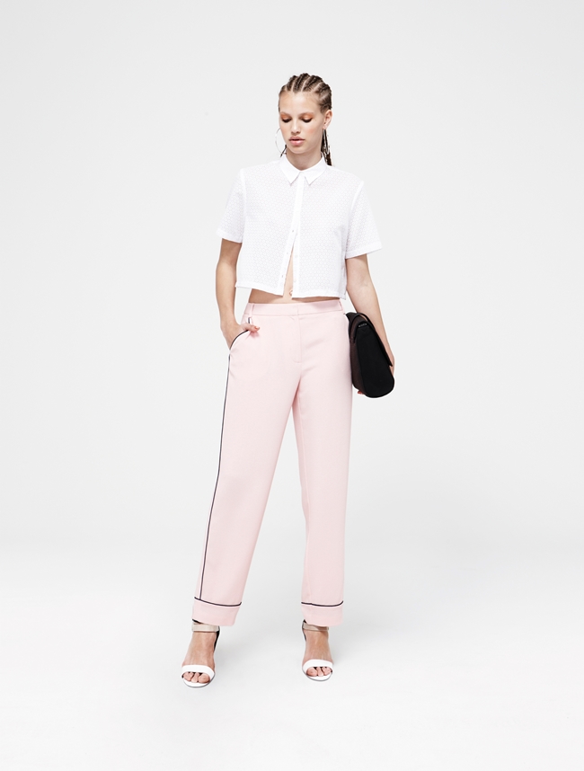 El rosa palo es tendencia absoluta esta temporada. Puedes conseguir un look muy dulce combinando una camisa (11€) tipo caja en color blanco con este pantalón (17€) recto con detalles en negro. Combínalo con unas sandalias y cartera a juego y listo!