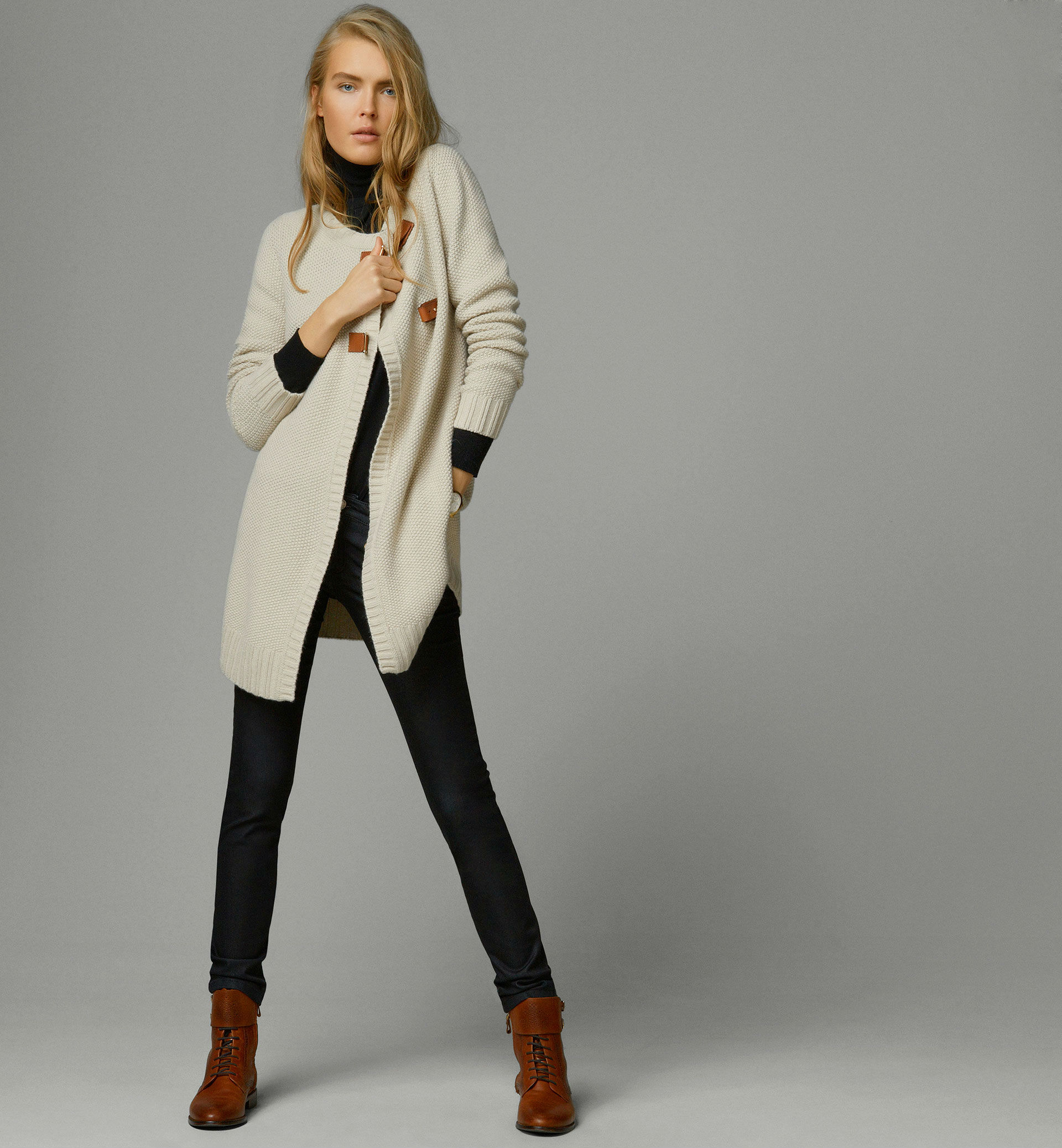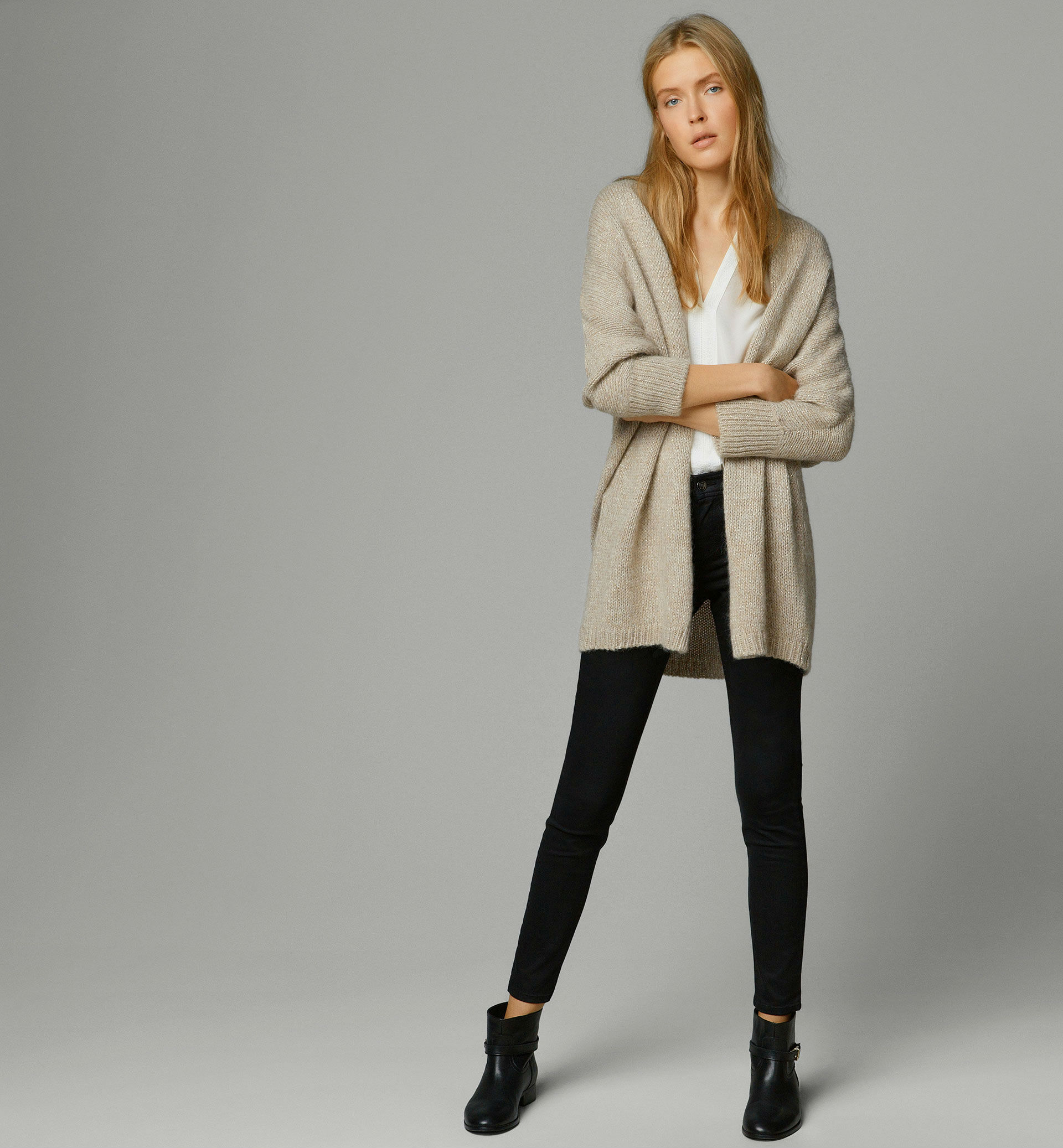 Look 3. Todo lo oversize es tendencia y este cardigan no puede ser más chic. Con unos simples jeans, unas botas biker y una blusa blanca estarás radiante.