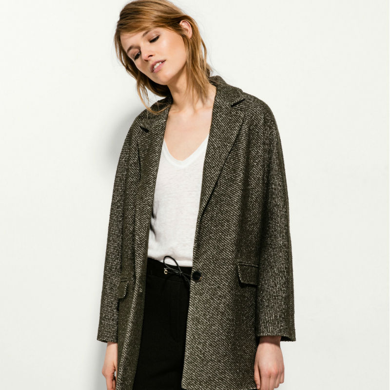 Pero si no te gusta lucir pieles pero si apuestas por los chaquetones con texturas diferentes, también es tu colección. Desde chaquetones de algodón en color crudo (como podéis ver en la primera imagen) donde su cosido en forma de espiga aporta dinamismo a la prenda, hasta chaquetones de punto de rizo en color verde. La confección en forma de punto da la sensación de combinar blanco y verde, perfecto para atrevidas que apuestan por el bicolor.