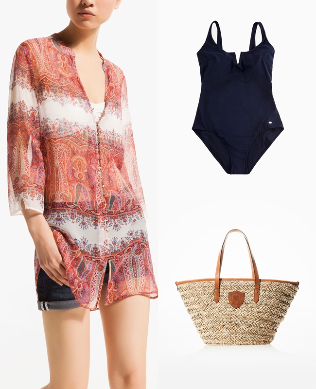 Si quieres hacerte con alguna prenda estampada aquí tienes la tuya. Este caftán es ideal para darle color al look y combinarlo con un bañador liso en color más oscuro. Irás perfecta con este capazo que Massimo Dutti ha diseñado tan sencillo pero cuidado hasta el último detalle.