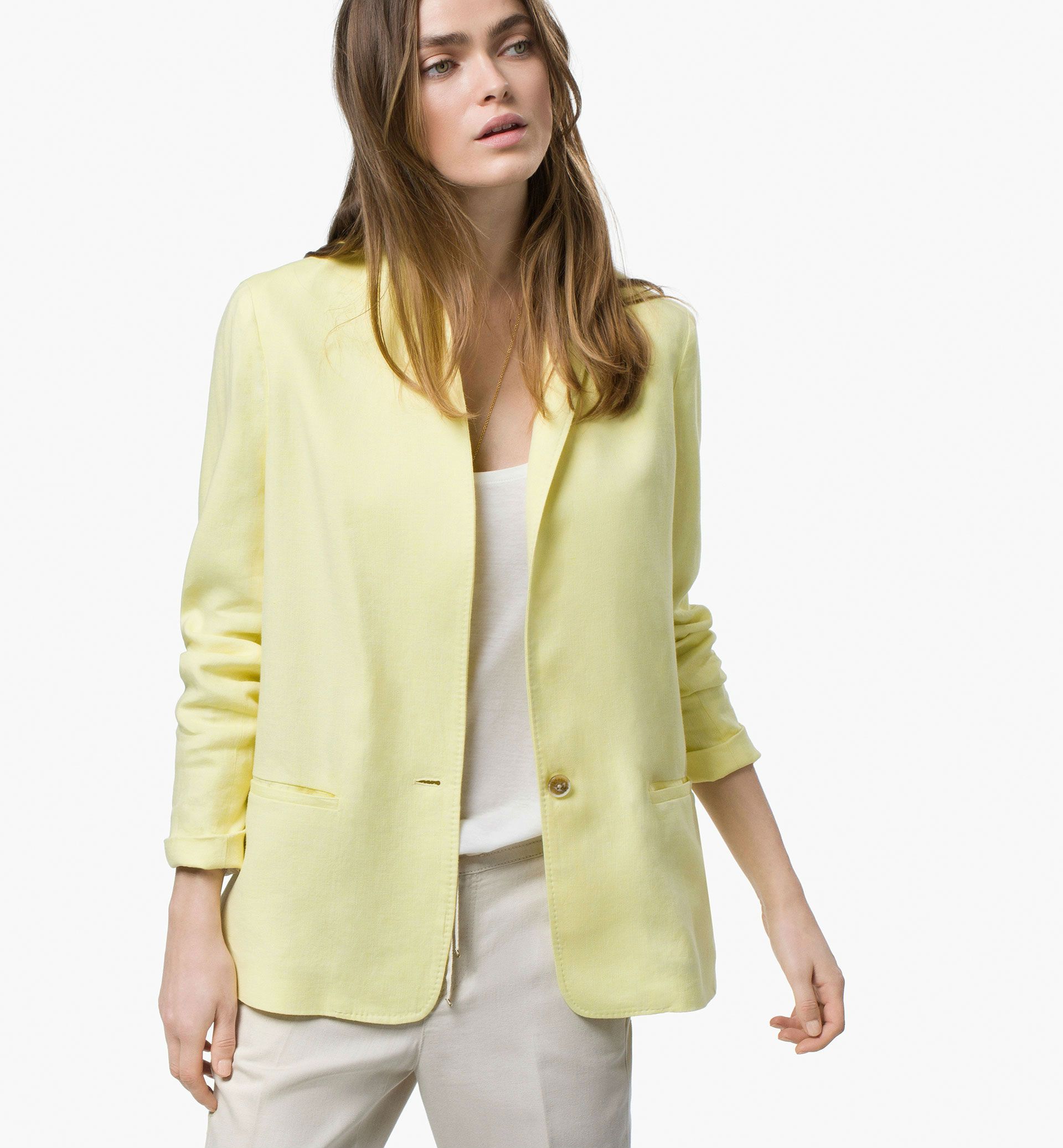 Americana ligera, confeccionada en tejido italiano en una delicada mezcla de lino y algodón. Cuello clásico, cierre de un botón, dos bolsillos de ojal en la parte frontal, puños con un botón, abertura central posterior y semiforro interior.