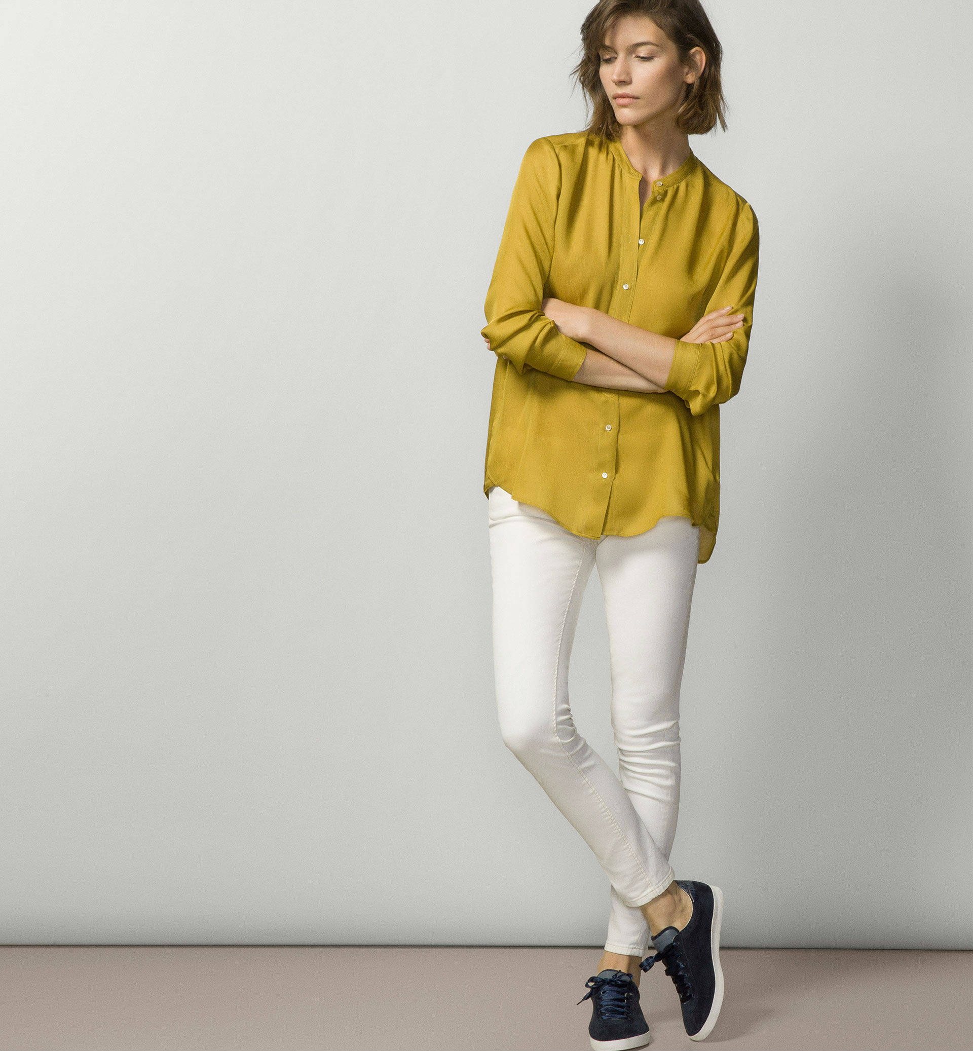 Blancos, caquis, mostazas, azules marinos…Massimo Dutti sigue en su línea y enmarca esta colección en las tonalidades más tradicionales y versátiles. Las que nunca fallan y las que han encumbrado a la firma como una de las favoritas por su elegancia.