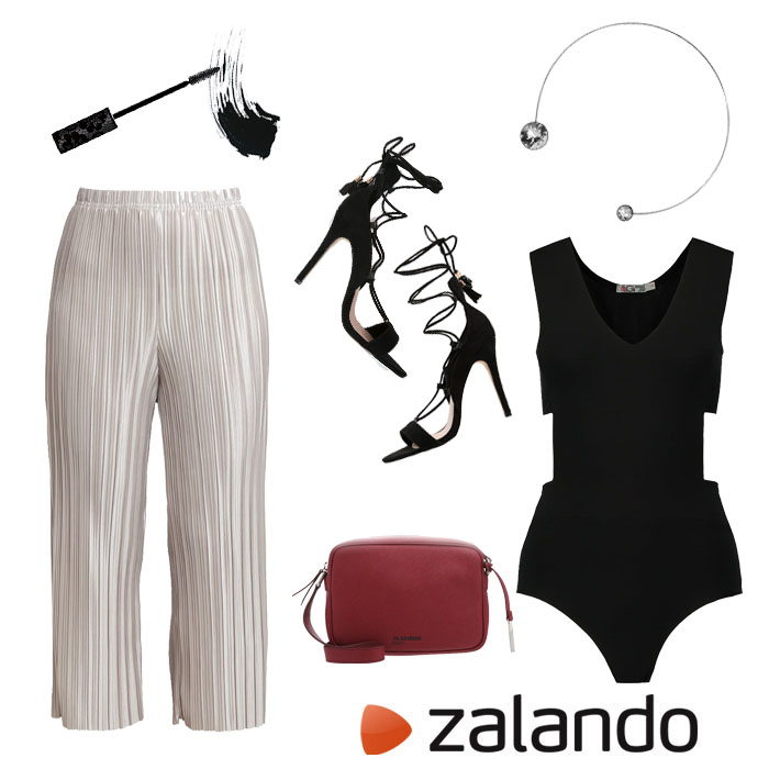 Las noches de fiesta necesitan de un look elegante y que se adapte a los must have de la temporada. En este tipo de citas no puede faltar un pantalón culotte de Zalando, uno de los imprescindibles que debes tener sí o sí. Saca tu lado más sexy con un body de aberturas y unas sofisticadas sandalias de tacón con lazada. Por último, pero no menos importante. Una bandolera en color granate que aporte una chispa de color y un collar de grandes aplicaciones luxury. ¡Sal a la calle y triunfa con este look!