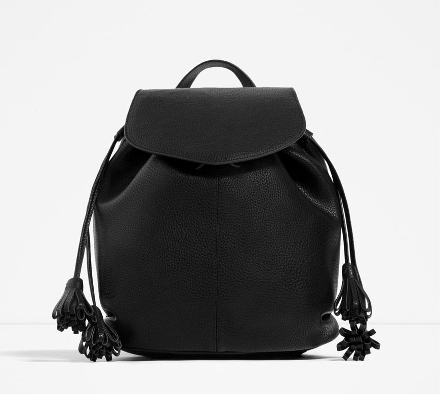 Zara nos muestra su lado más versátil pero no por ello el menos divertido u original. Aunque esta mochila de color negro puede parecer básica a primera vista, las borlas consiguen dar ese allure chic y casual que tanto nos gusta para el dailywear.