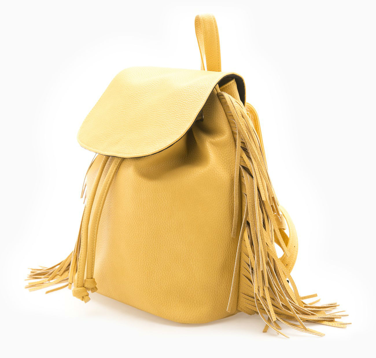 Flecos y más flecos. Si los bolsos habían caído ya bajo la influencia de los fringes, ahora es el turno de las mochilas. Opta por este modelo en color amarillo de Stradivarius, un extra de energía para cualquier look.