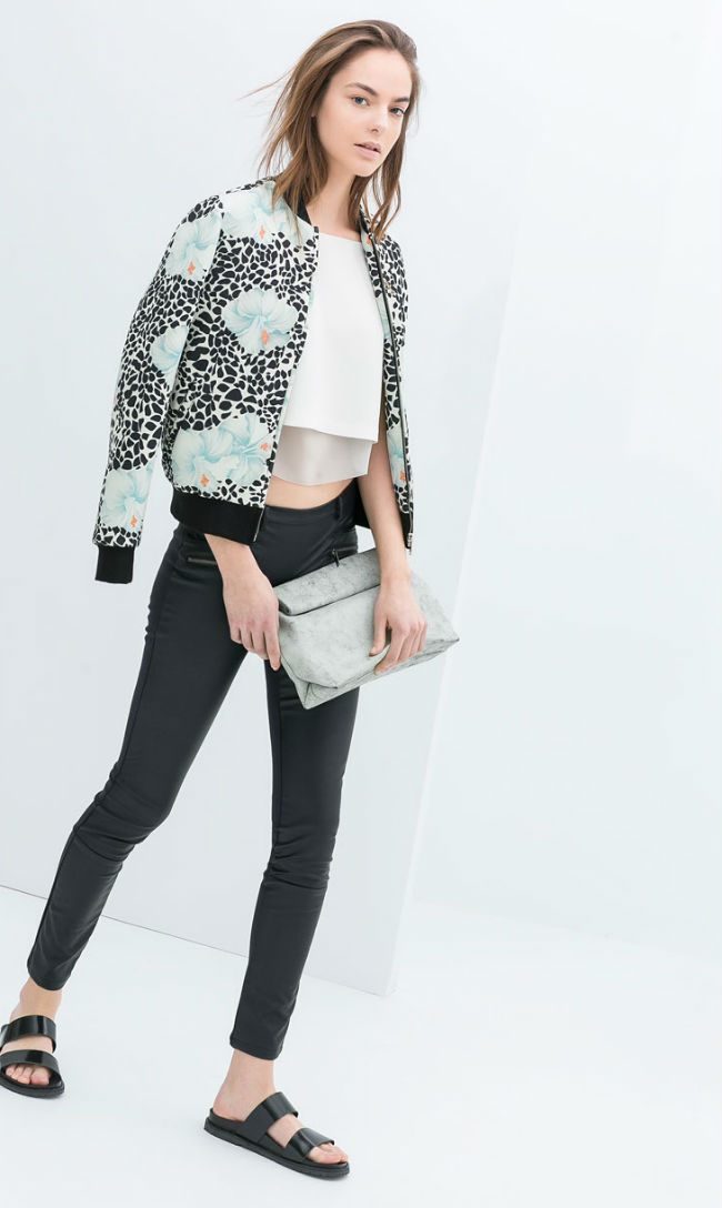 Para las más frioleras, la nueva colección de Zara opta por los pantalones largos. Con una bomber de flores y un crop top crearás un estilismo de 10.