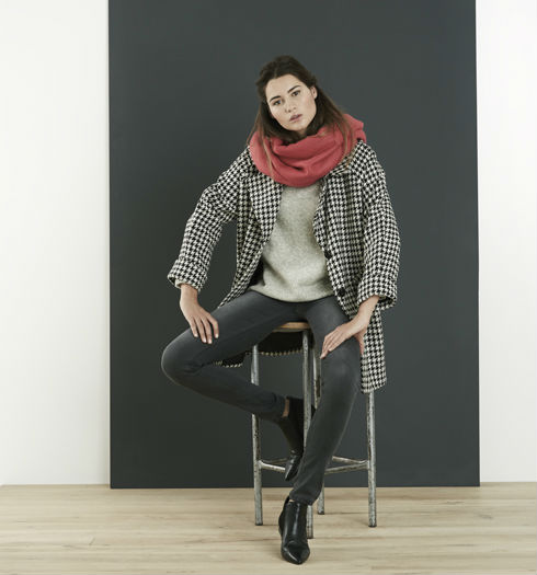Los tonos neutros pueden revitalizarse a través de complementos coloridos. Un claro ejemplo es este outfit de Promod basado en la versatilidad y un original foulard.