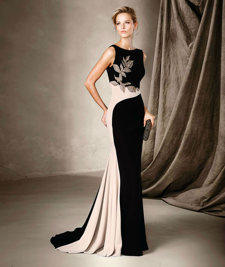 Un vestido negro no tiene por qué ser sinónimo de un clásico aburrido y sobrio. Las nuevas tendencias se adaptan a estos vestidos en la nueva colección de la marca española cargando de estilo a este básico reinventado. El negro se fusiona con el crema, una combinación chic que arrasa gracias a la pedrería en forma de flor, representando el lujo en estado puro.