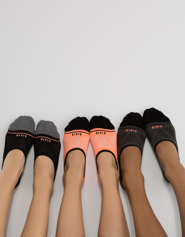 Calcetines técnicos. Calcetines de caña baja en colores negro,gris y naranja fluorescente que te ayudarán a mantener tu pies en total confort cuando practiques deporte.