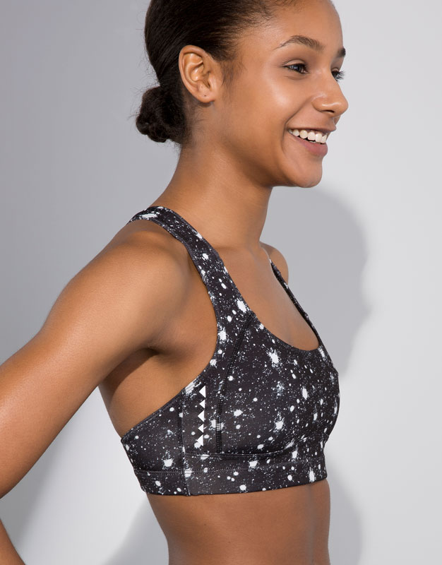 El top deportivo es el artículo en el que la marca más ha podido innovar y plasmar su propio estilo. Se han alejado del típico top liso y han optado por incluir estampados, rótulos y formas diferentes que lo hacen más llamativo.