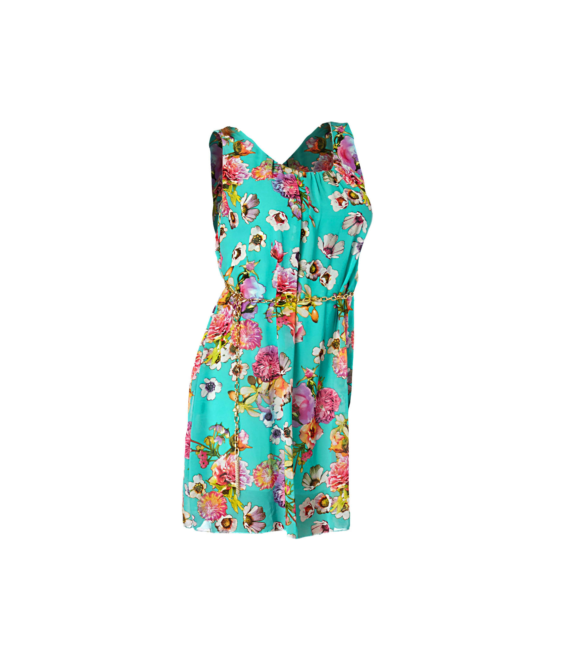 Pasamos a la versión mini del vestido, una pieza alegre que viene acompañada de composiciones florales y cinturón de eslabones en clave gold. El tejido con el que está elaborado podrás disfrutar de comodidad y frescura.