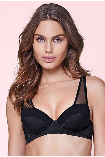 Sujetador balconet Sofía. Sujetador negro con un poco de relleno y aro, realizado en seda y detalles de tul. Tirantes regulables que pueden realzar el pecho. Un perfecto básico de fondo de armario.