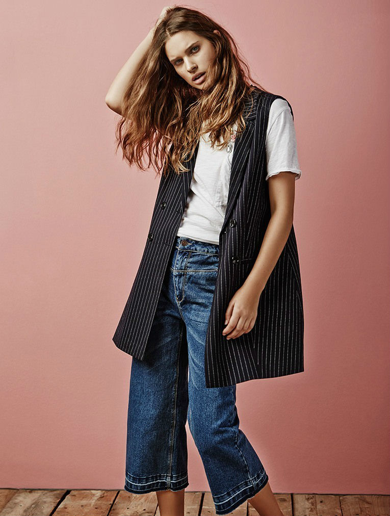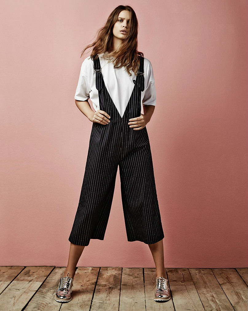 Déjate seducir por las rayas diplomáticas, un estampado de aires masculinos que ahora llega a nuestros armarios. Sobre un fondo negro, las rayas blanca se deslizan sobre el tejido, demostrando su potencial como print estrella de esta colección. Maxi chalecos y monos culotte van a ser un referente esta temporada.