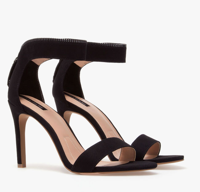 Nos encanta el detalle de la cremallera en la tira superior de estas sandalias de tacón negro que serán tus fieles compañeras en las fiestas de verano.
