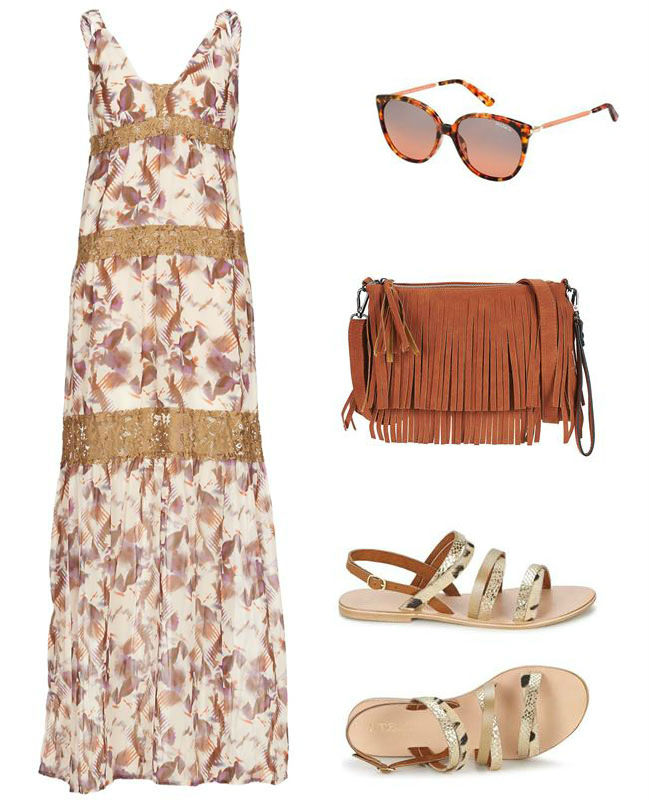 Con este look hemos querido captar la esencia del estilo boho chic, una estética que está en su mejor momento y que no puede faltar en la maleta durante estas vacaciones. Este vestido largo de Spartoo con detalles de encaje es el mejor exponente hippie, una pieza que podrás llevar tanto de día como de noche. Juega con los accesorios y no tengas miedo de mezclar prints y texturas así que combina tu long dress con unas sandalias de estampado animal, un bolso de flecos y unas bonitas gafas con montura de carey. ¡El que no arriesga no gana!