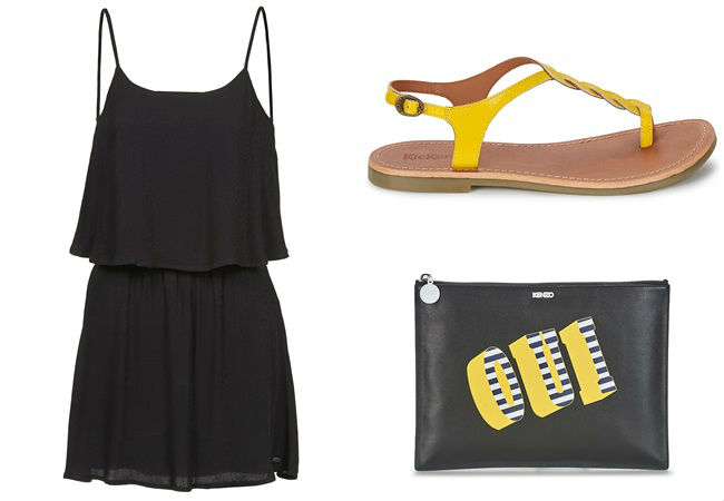 El little black dress se ha convertido en un básico que toda mujer debe tener, nos saca de los mayores apuros y siempre acertamos cuando lo llevamos. Reaviva este vestido capa con una cartera de mano de lo más original, di ‘oui’ (sí) a este conjunto que podrás unir con unas sandalias amarillas. Conjuntarás tanto el clutch como el calzado de una forma divertida y muy cool.