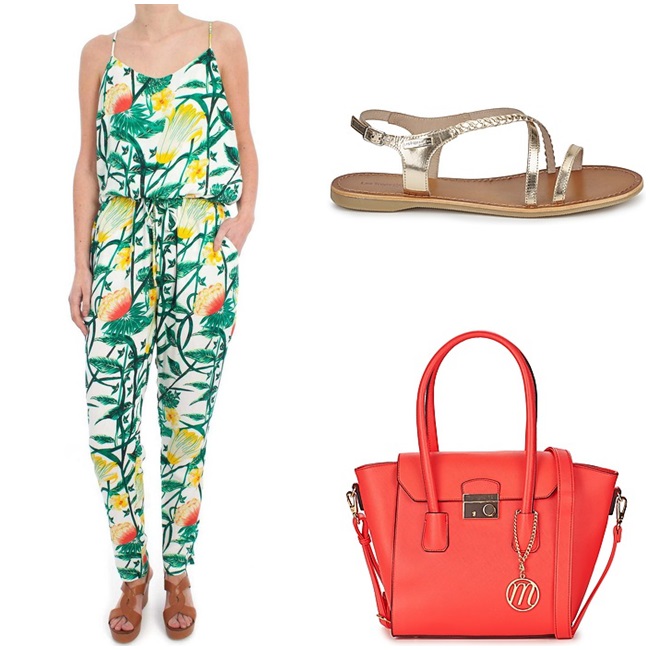 Con la subida de las temperaturas apetece lucir estampados llenos de color, por eso hemos elegido este precioso mono de tirantes con maxi print floral. Su tejido es muy fresco y ligero, así podrás estar cómoda incluso cuando hace calor sin que el dicho ‘Para presumir hay que sufrir’ te afecte. Combina este jumpsuit con unas sandalias planas metalizadas, un imprescindible que este verano 2015 está arrasando más que nunca, y un bolso en coral para darle un toque más chic al outfit.