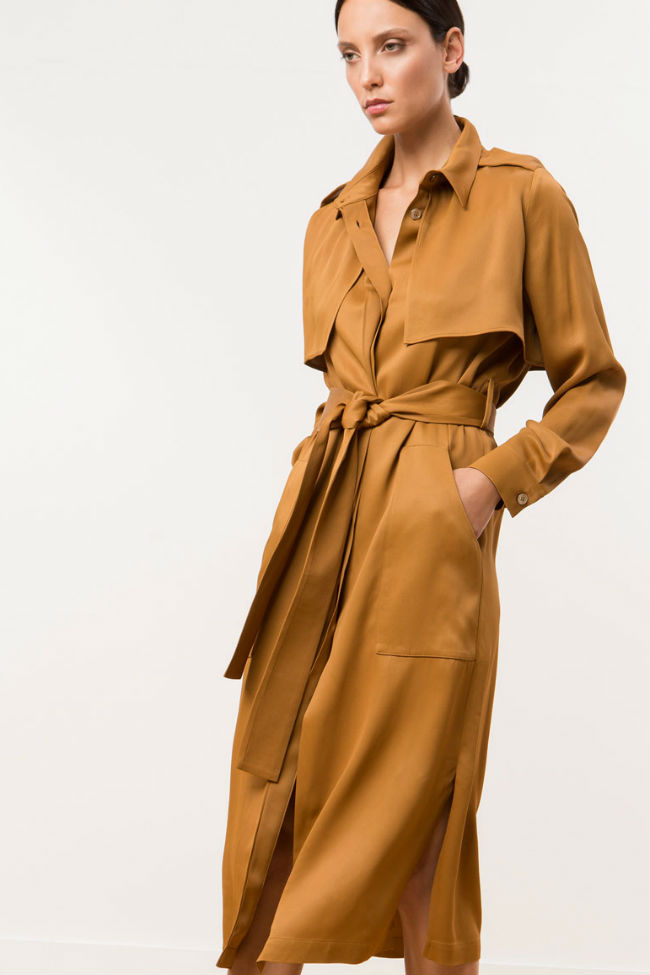 Uterqüe se suma a esta tendecia apostando por un modelo largo en camel con amplios bolsillos y aberturas en los laterales.