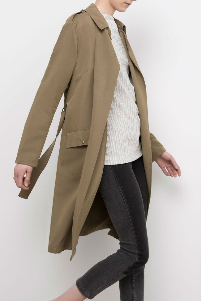 El tierra o incluso nude es el color más básico de este tipo de prenda exterior. Se trata de una tonalidad increíblemente versátil que jamás pasa de moda y que nos permite combinarla durante la etapa atemporal. Trench coat de Pull and Bear.