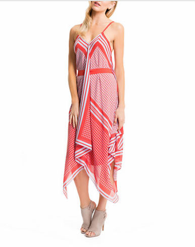 Debido al boom que ha suscitado este vestido y que se ha quedado sin stock de la prenda que te hemos mostrado, la firma ha decidido crear modelos de corte similar y diferentes estampados como este llamado CYNTHIA STEFFE Red Scarf Maxi Dress y que podrás ser tuyo por 261’42€.