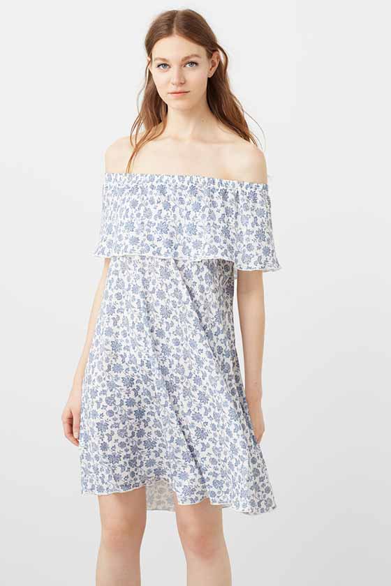 Vestidos off the shoulder en las rebajas verano 2016 de Mango, Zara y H&M