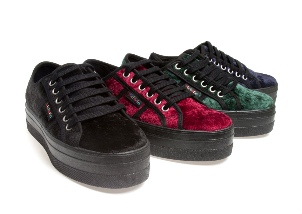 Las blucher de maxi plataforma se erigen como la máxima apuesta para la próxima temporada de Victoria para su línea de mujer, demostrando que los tacones no son necesarios para ser femenina. Materiales suaves, como el terciopelo o atrevidos glitters invaden estos diseños de suela negra para que brilles con luz propia con un look súper trendy y chic.