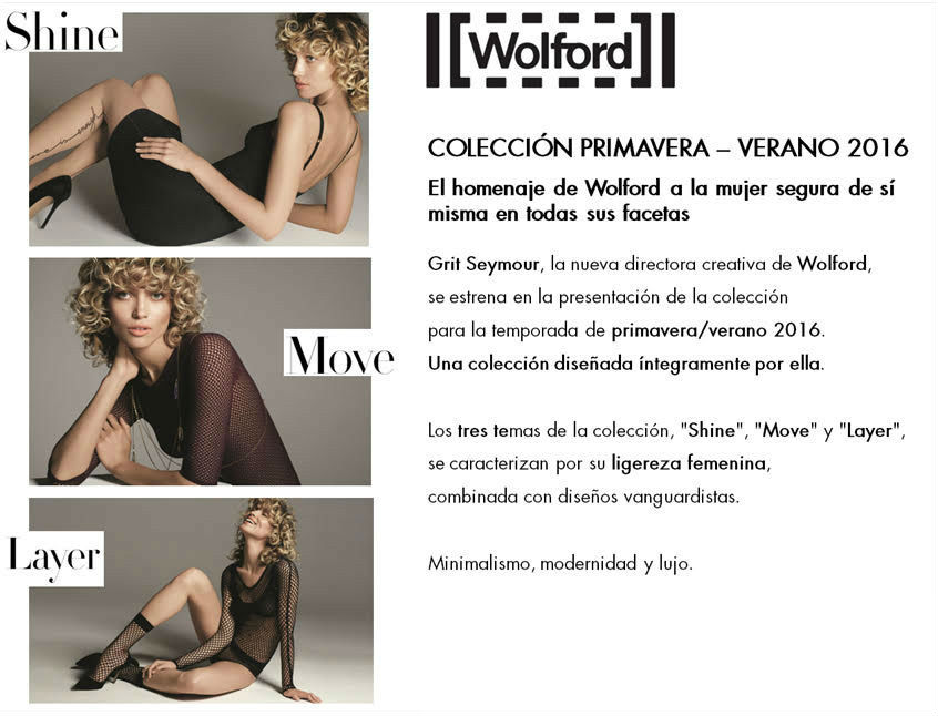 Grit Seymour se estrena en Wolford como nueva directora creativa a través de una colección primavera verano 2016 que promete ser toda una revolución. La fuente de isnpiración llega de una mujer moderna, segura de sí misma y sin miedo a mostrar sus curvas.