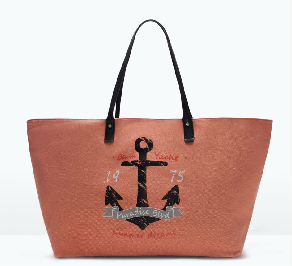Bolso grande con detalle de print de ancla, asa de hombro, bolso interior extraíble y forro en contraste con el bolsillo. Medidas: 33 x 50 x 19 cm. (17’99€)